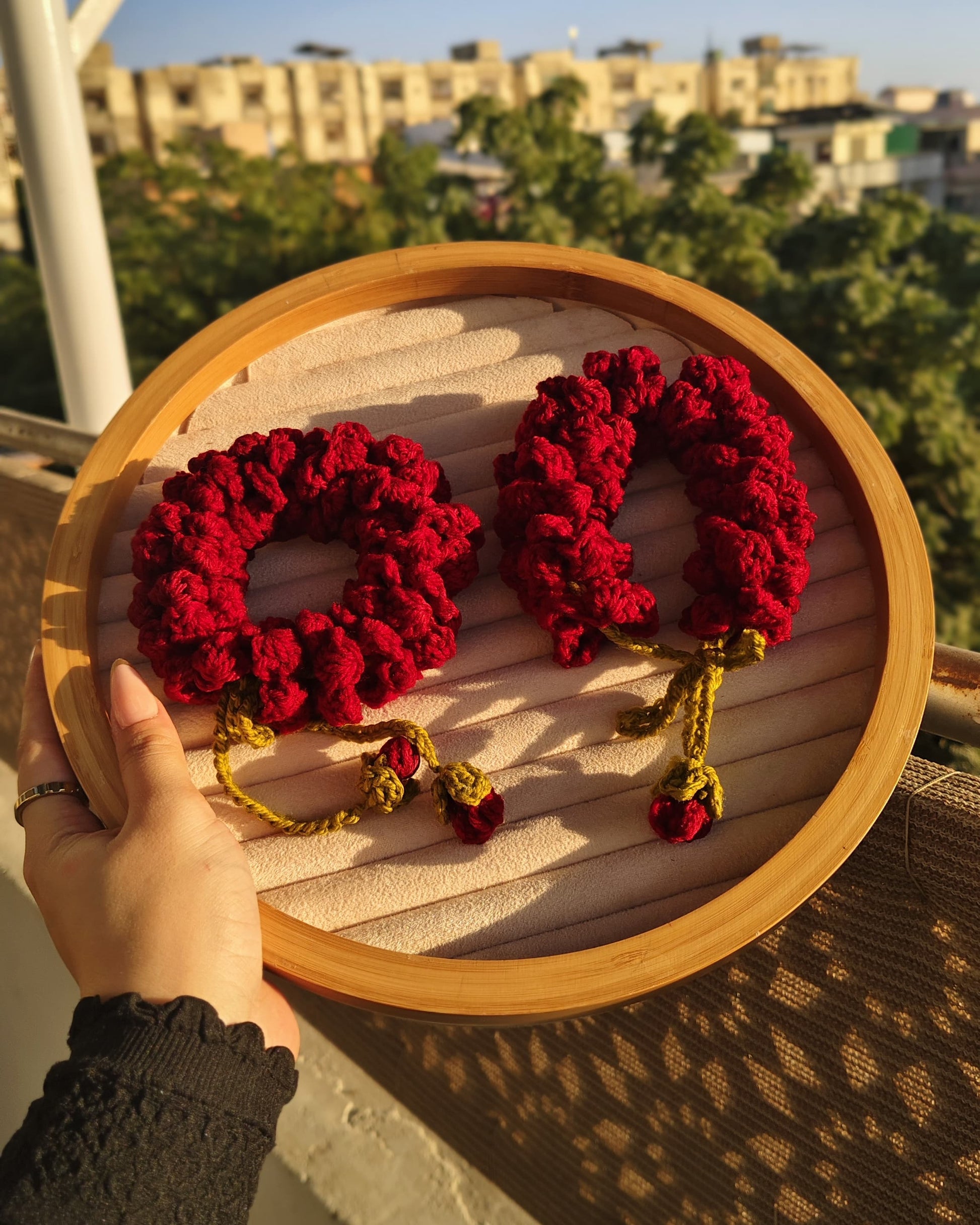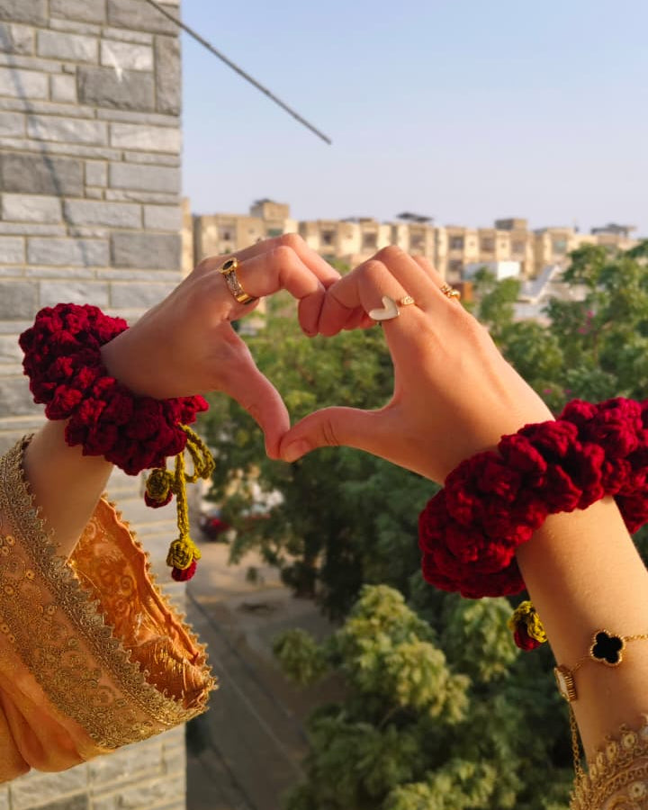 Delicate and Passionate Deep Maroon Jasmine Gajras, made to celebrate her everlasting grace and soul's beauty. 🤍